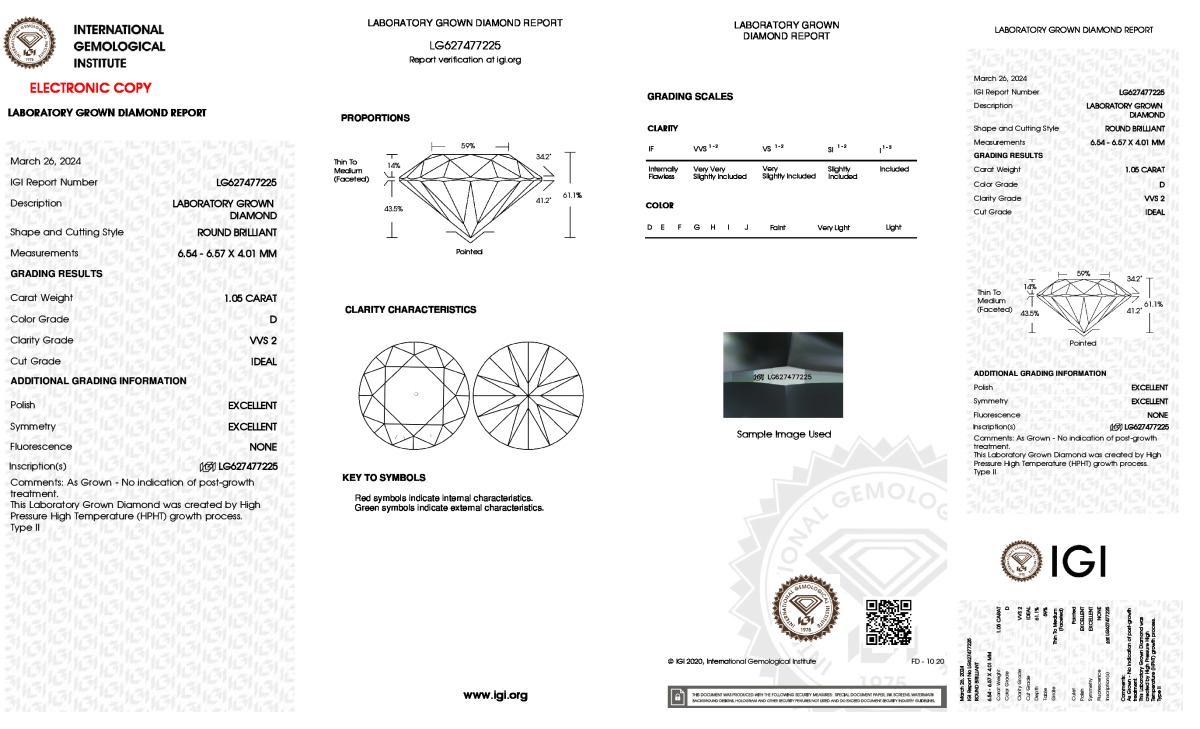 Lab Grown – BR 1.05 D, VVS2, IGI#627477225