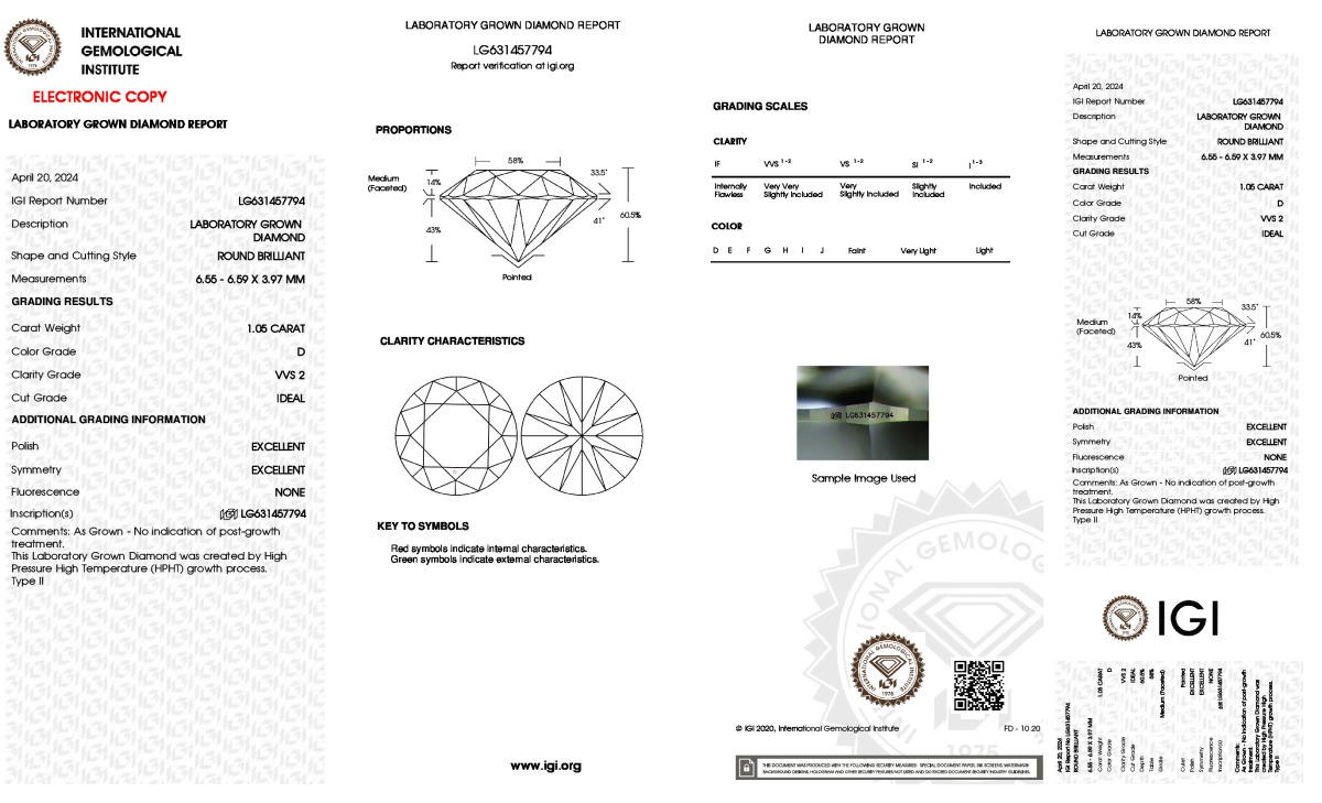 Lab Grown – BR 1.05 D, VVS2, IGI#631457794