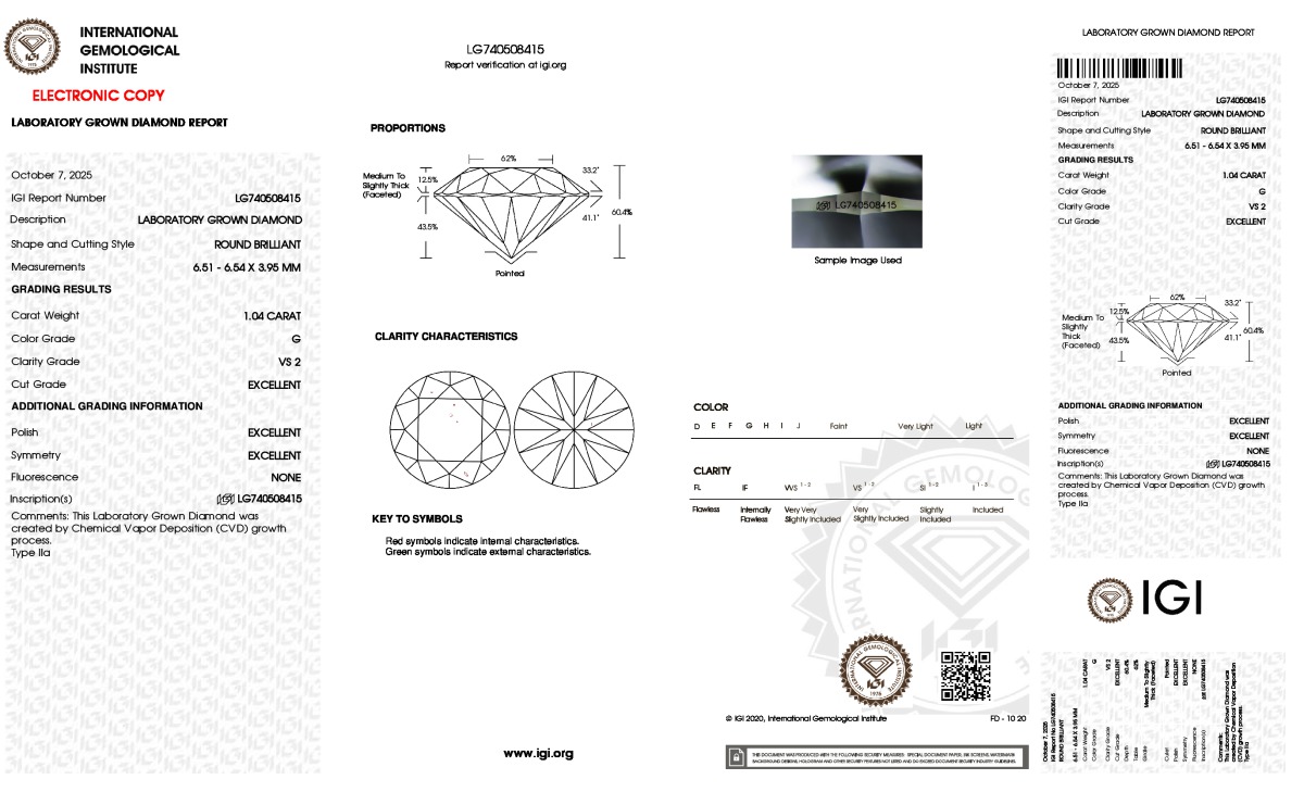 Lab Grown-BR, G, VS2, IGI #740508415, 127-KTAI
