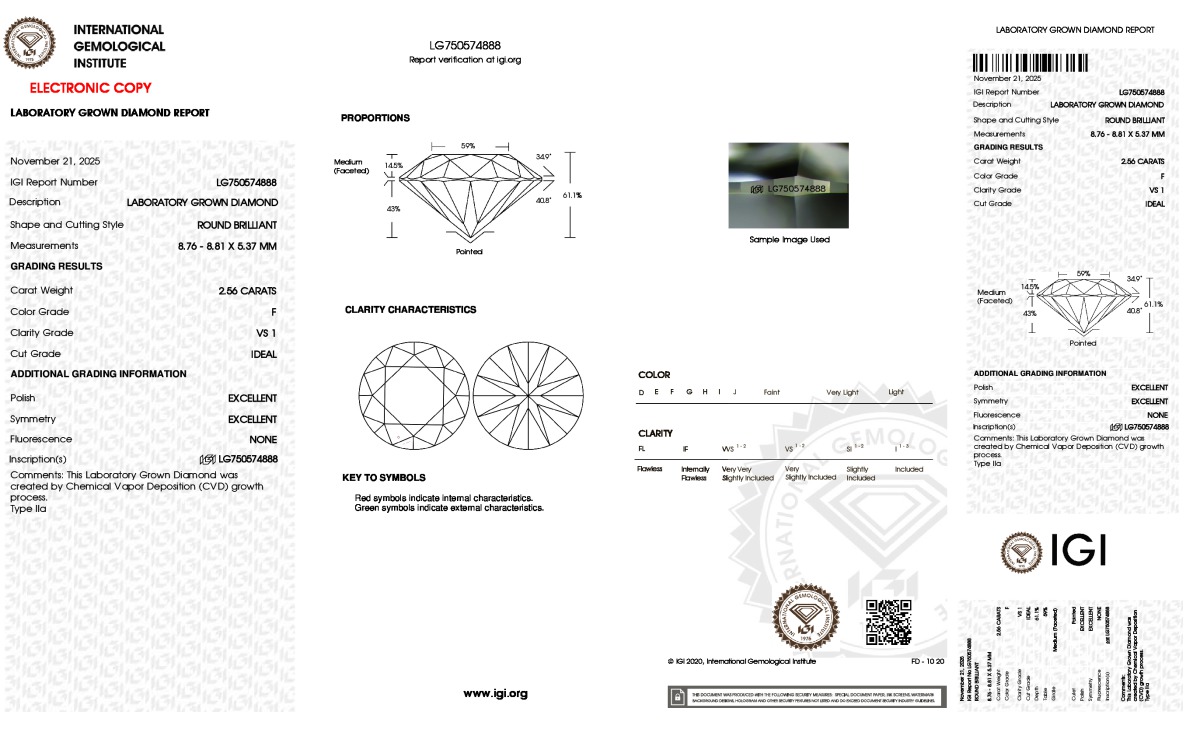 Lab Grown-BR, F, VS1, IGI #750574888, 09-KKNS