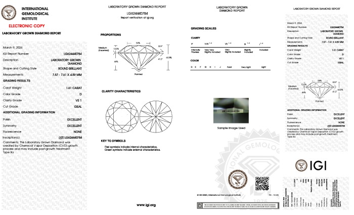 Lab Grown – BR 1.61 D, VS1, IGI#624440784