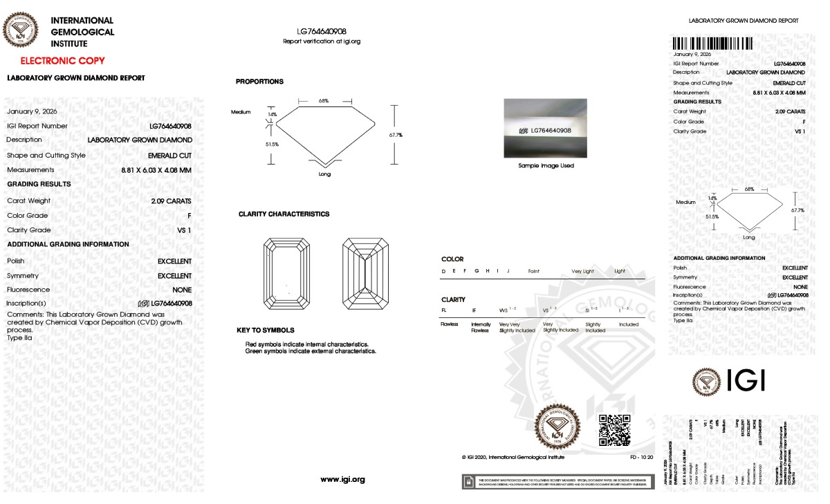 Lab Grown-EC, F, VS1, IGI #764640908, 02-KKI