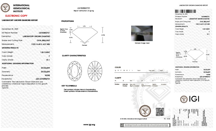 Lab Grown-OV, F, VS1, IGI #760552721, 98- KTTT