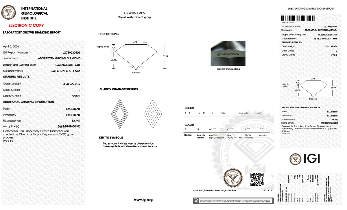 Lab Grown-LOZ, E, VVS2, IGI #LG789630406, 127