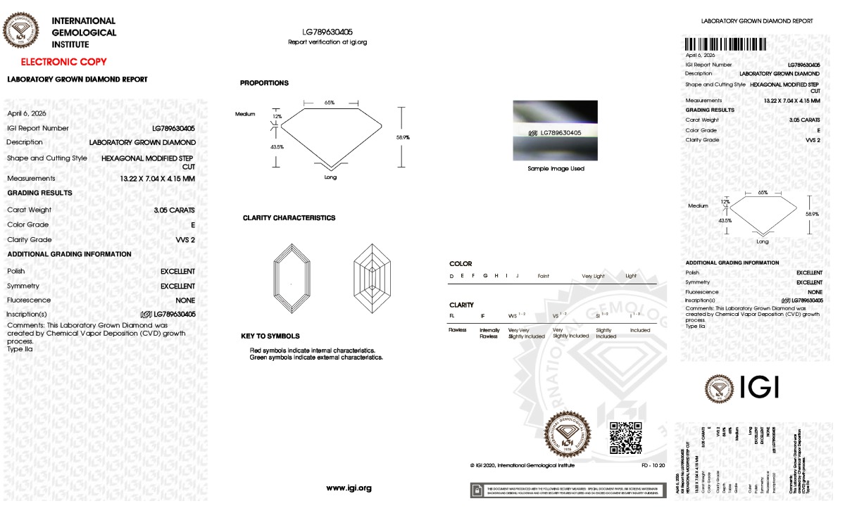 Lab Grown-HEX, E, VVS2, IGI #LG789630405, 127-