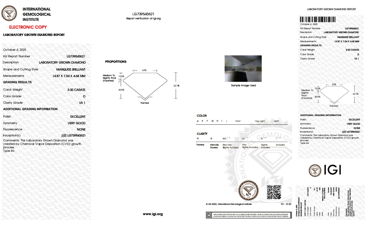 Lab Grown-MQ, D, VS1, IGI #739543621, 39-KKLT